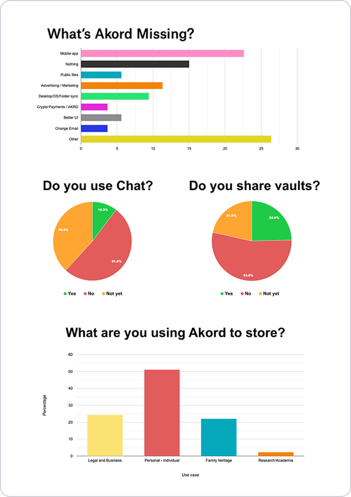 Over the first year, we kept iterating until Akord encompassed a broad variety of SME needs for privacy-first file management and collaboration.