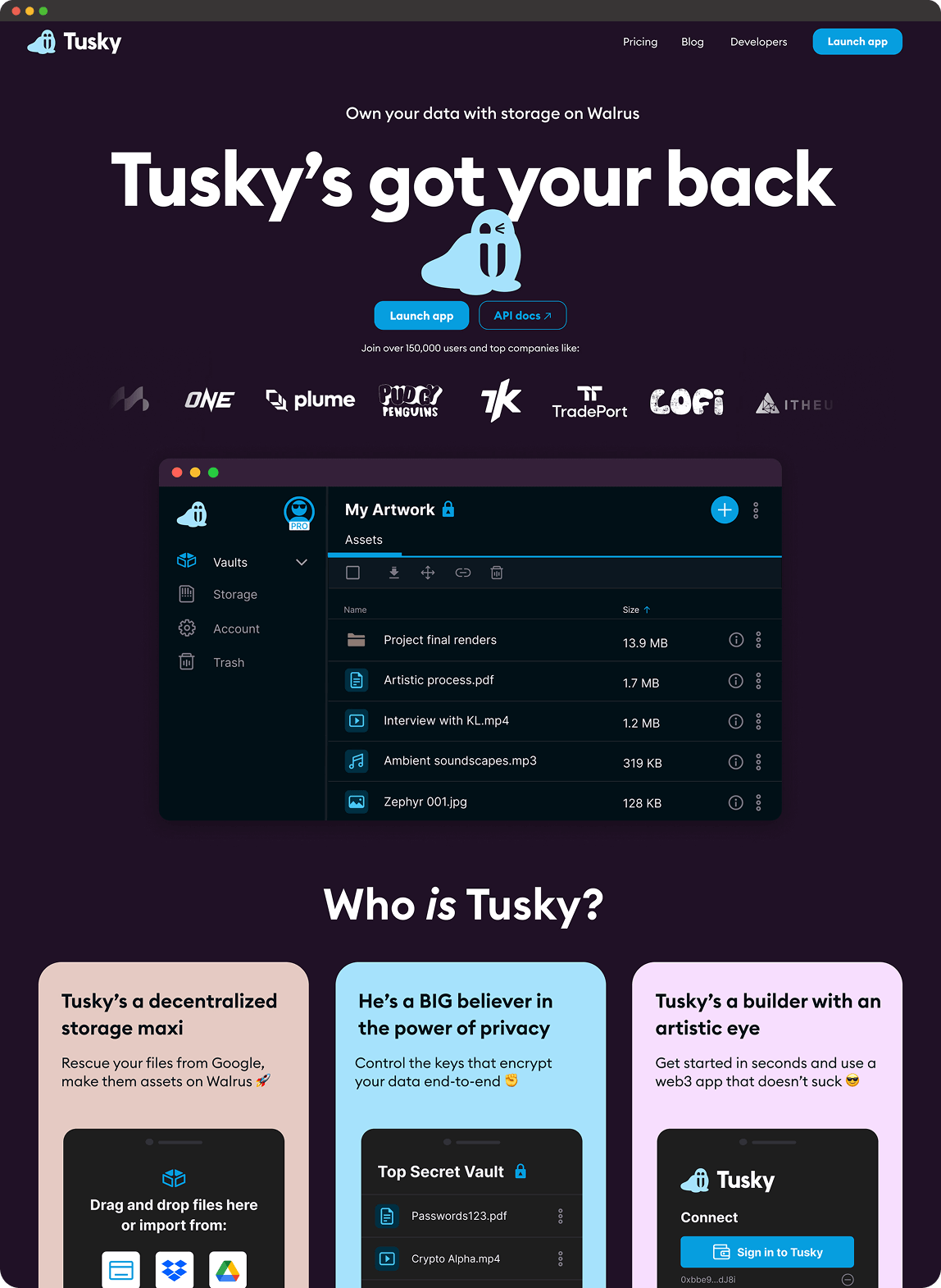 Tusky was born from a strategic investment and a mandate to become the Walrus ecosystem’s “decentralized Dropbox”.
